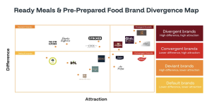 Take two challenger brands in the ready meals category: Gym Kitchen and Cook. Both score high on Difference – Gym Kitchen is emotionally resonant and highly shared amongst fitness tribe and Cook owns a unique premium positioning.